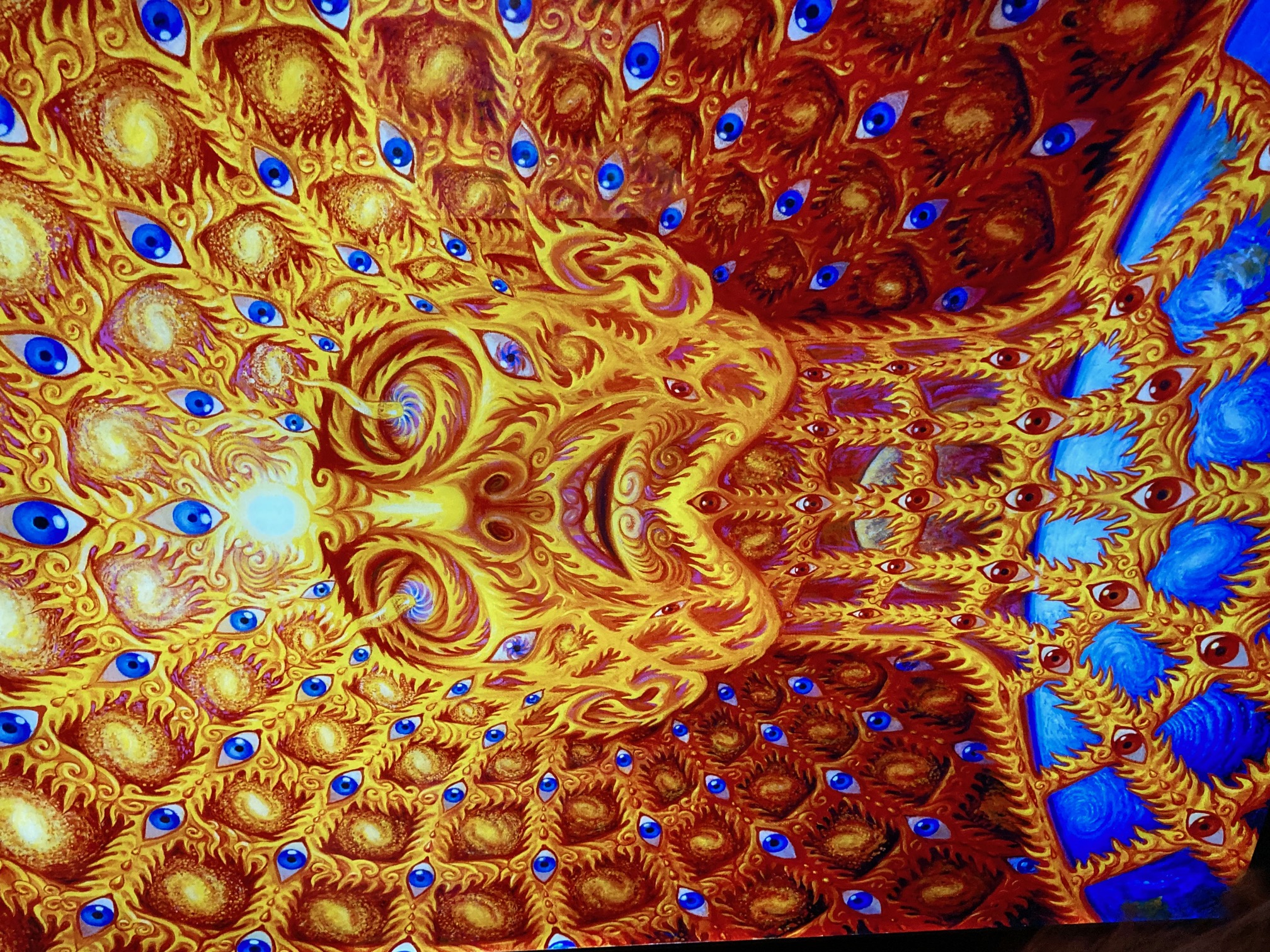 This exhibition offers a rare opportunity to delve into their visionary perspectives on consciousness, perception, and the human spirit. This will be the first time the artists will be showcasing their work in the UK, following an established career of global exhibitions and respected influence in both artistic and spiritual communities. Alex and Allyson are also the co-founders of Chapel of Sacred Mirrors (CoSM), a non-profit organisation dedicated to fostering creativity, spirituality and contemplation through art.