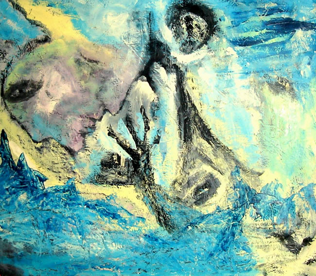 For the past 13 years I have painted almost daily, working and reworking – great therapy. More ‘purging the demons’ has also allowed me to recreate things in my own manner. Drugs and self-hypnosis, delving into the deep recesses of the mind, past life regression, trying to see the future. Keep in touch with the Spirits Primal, tribal, alien and spiritual landscapes, producing strange and haunting portraits I call ‘Personages’, most are of myself I suppose.
