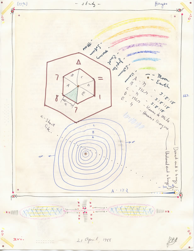 Note: Hidden within the drawings that Devlin produced are cabalistic, magical designs, and number sequences that have meaning/importance to John. Most drawings are two sheet, occasionally three, and these ‘additions’ are not visible unless one separates the pages.