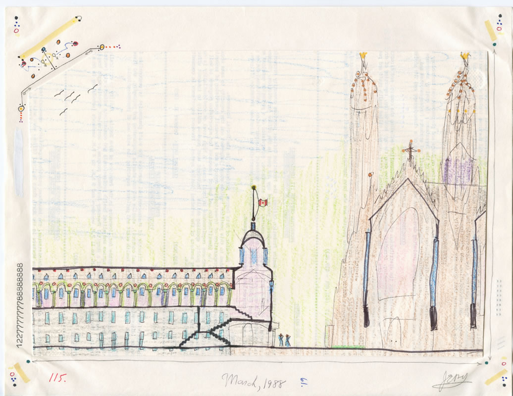 After further hospitalization and a period in which he was unable to draw, John moved in 1989 into a group home in Dartmouth, Nova Scotia where he has been ever since and where he continues to refine his visionary evocations of the imaginary cityscape in his outsider art.