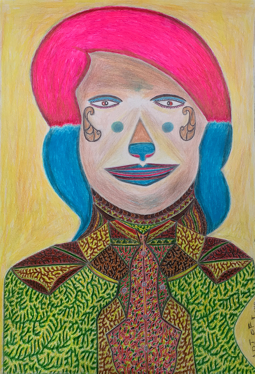 The central marks of Weree’s oeuvre are the mesmerising features of an imaginary people.