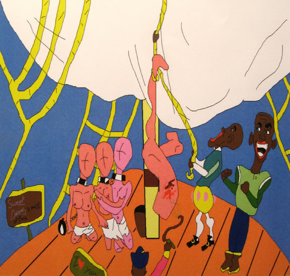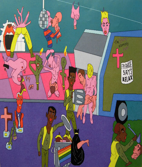 Nicola Frimpong creates outsider art exploring themes of Taboo subjects, violence, degradation, hatred and sexual deviancy. Essentially self-taught she has exhibited at many London fringe galleries, but more recently her work was included in a mixed show at the Tate Modern.
