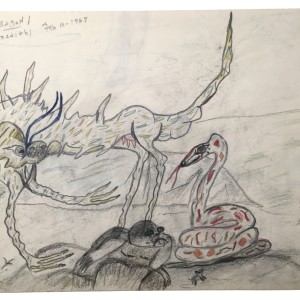 The drawings, with their vivid, mobile evocations of otherworldly, monstrous or hybrid beings, bring to mind the work of medium and psychic Helen Smith, who also produced such sketches of alien worlds, and strange creatures from Mars and other planets.