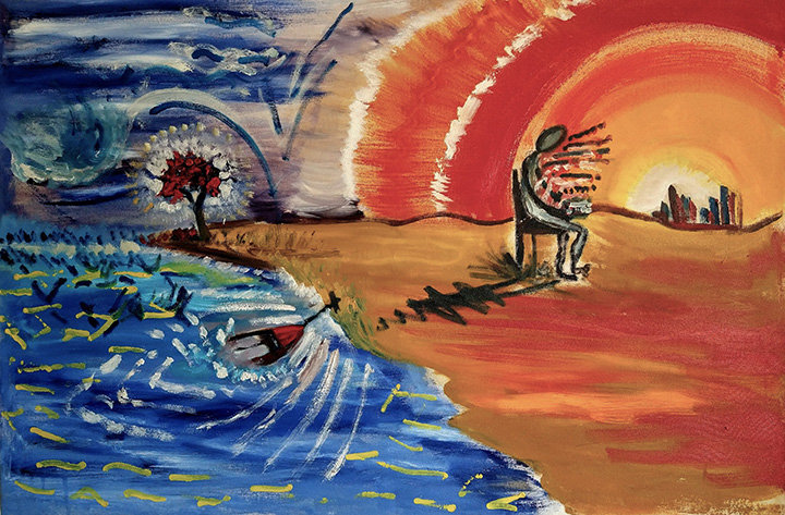 Sher organized an exhibition of a series of watercolors he made while he was a patient at the Dandryd Sukhjus Psychiatric Ward in Sweden in 2016. The exhibition was attended by the staff and nurses at the facility. His book, “When the suffering is over”, written between 2012 to 2017, contains chapters that complement each of those works. Later, in 2018, Sher held another solo exhibition in his hometown of Lahore, also titled “When the suffering is over – An exhibition about loneliness, dreams and madness”.