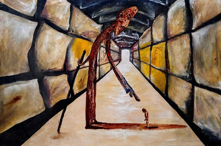 Sher Khan (1986-2020) was a writer, physicist and self-taught artist who battled with manic depression and paranoia from his early teens. He lived and worked across the world in Pakistan, Japan, the Netherlands, Italy, France, Austria and China. His art and writings are a brutally raw and honest look into the mental torments of an extreme introvert. A study of even his earliest works, watercolors from his high school years (2000-2005), reveal the beginnings of feelings of deep shame and guilt that become a prominent theme in his later works. He often discarded entire bodies of his work when he moved between locations, but his known works in existence include 400 drawings and paintings, 3 complete books, and numerous short stories, essays and letters.