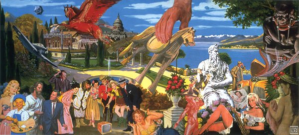 ‘Following that time tested Dadaist tradition of montage, collage and random image appropriation, Winston Smith takes this medium one step further than his precursors, Max Ernst and Marcel Duchamp’. Robert Williams. Winston Smith’s art for Green Day’s ‘Insomniac’ album was voted one of the top three favorite CD covers of 1996 in a Rolling Stone Magazine reader’s poll. Clients include Playboy, Architectural Digest & Warner Bros Records. Other cover artwork includes that for the cult band The Dead Kennedys.